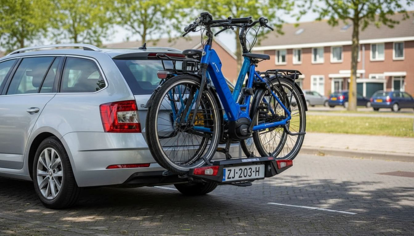 Achterklepdragers hangen met haken en riemen aan de achterklep en kunnen meestal rond de 45 kilo totaal aan. Ze zijn daardoor vooral geschikt voor lichtere e-bikes, tot ongeveer 20 kilo per stuk. Je hebt geen trekhaak nodig en ze zijn vaak goedkoper. Nadeel: je kunt meestal niet bij de kofferbak zonder de drager (deels) los te halen. Ook past het niet op elke auto, vooral niet met een glazen achterklep. Omdat al het gewicht aan de klep hangt, is dit type minder stabiel. Beveiliging is vaak beperkt tot een simpel kabelslot door de wielen.