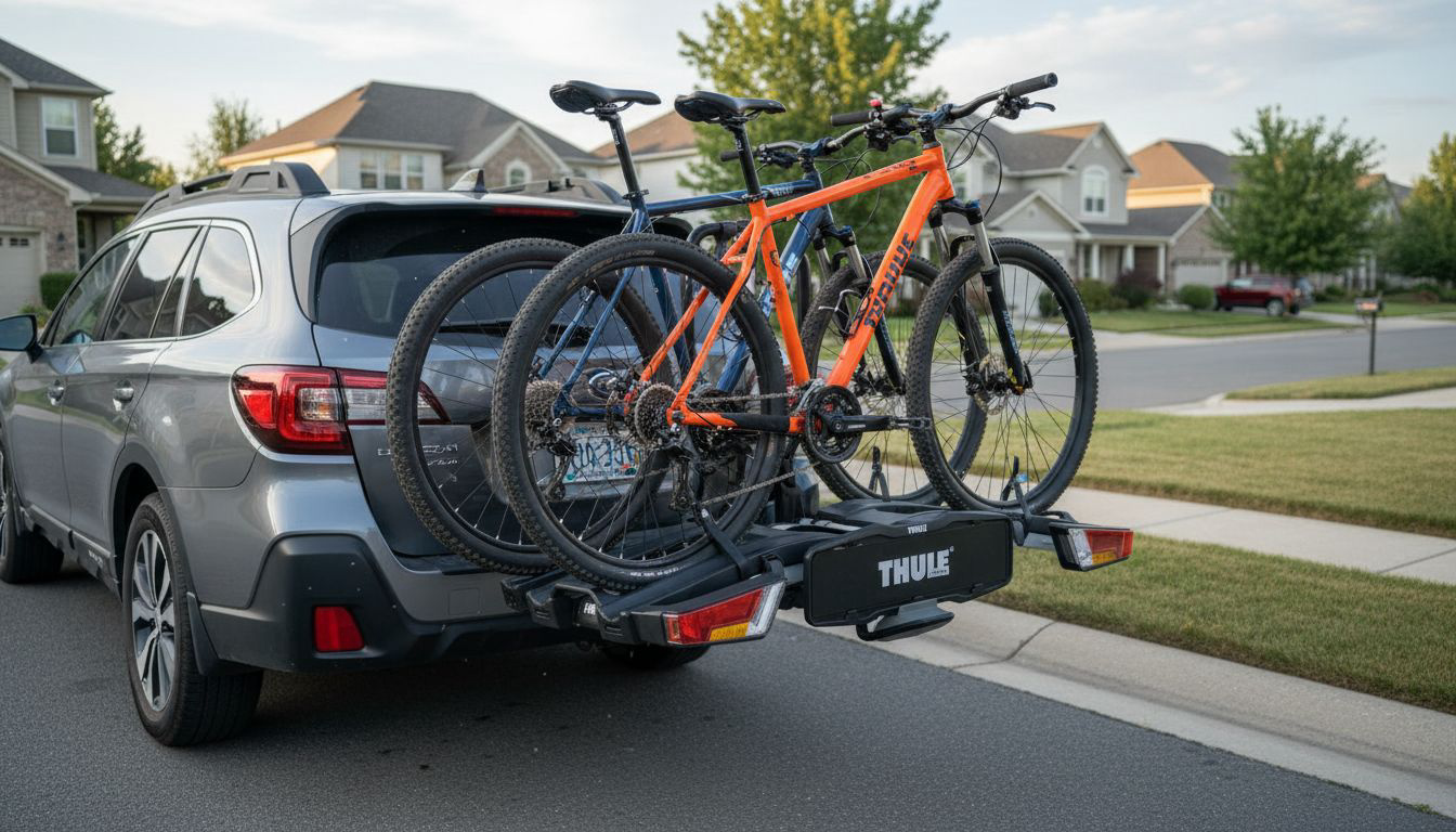 Trekhaakdragers kunnen veel gewicht aan: vaak 50 tot 60 kilo totaal, en sommige tot 70 kilo. Je schuift ze op de trekhaak en zet ze vast met een klem. Je tilt de fietsen tot ongeveer heuphoogte, wat bij zware e-bikes fijner is dan tillen tot dakhoogte. Veel modellen kun je kantelen, zodat je bij de kofferbak kunt. Je hebt wel een trekhaak nodig en je sluit de verlichting aan met een 7- of 13-polige stekker. Vaak kun je zowel de drager als de frameklemmen op slot zetten.