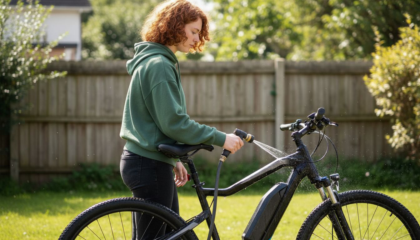 Maak je e-bike regelmatig schoon met een emmer lauw water, een beetje afwasmiddel en een zachte spons of doek. Neem vooral het frame, de spatborden, de bagagedrager en de wielen mee, zeker na regen of ritten door zand en modder. Vuil en zand werken als schuurpapier.