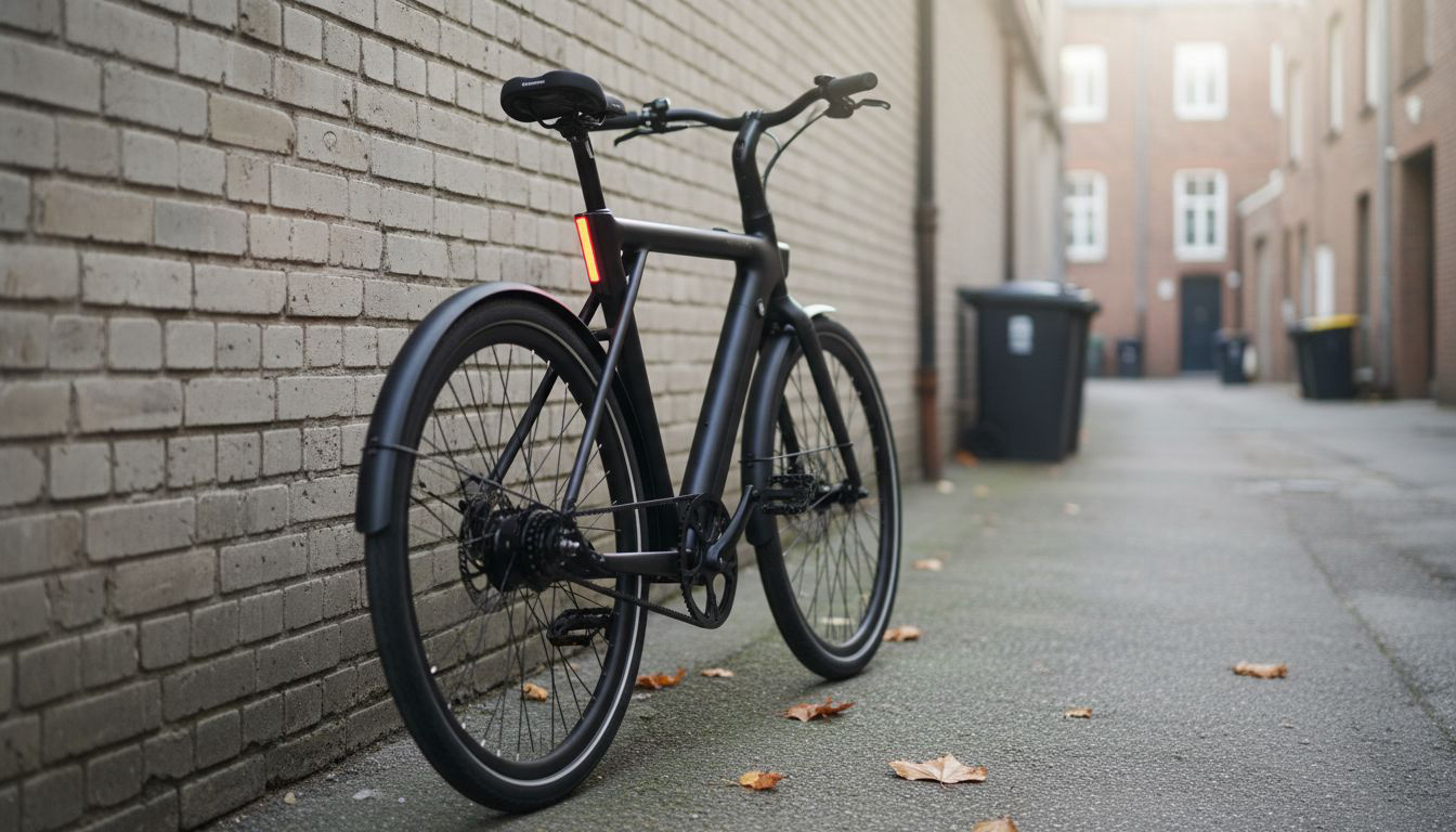 Altijd vaste verlichting aan boord. De lampen zitten vast op de fiets en draaien op de hoofdaccu. Je hebt voor een LED-koplamp en achter een achterlicht dat automatisch aangaat als je fietst. Je hoeft dus niet met losse lampjes of batterijen te rommelen, en je bent in het donker gewoon standaard zichtbaar.